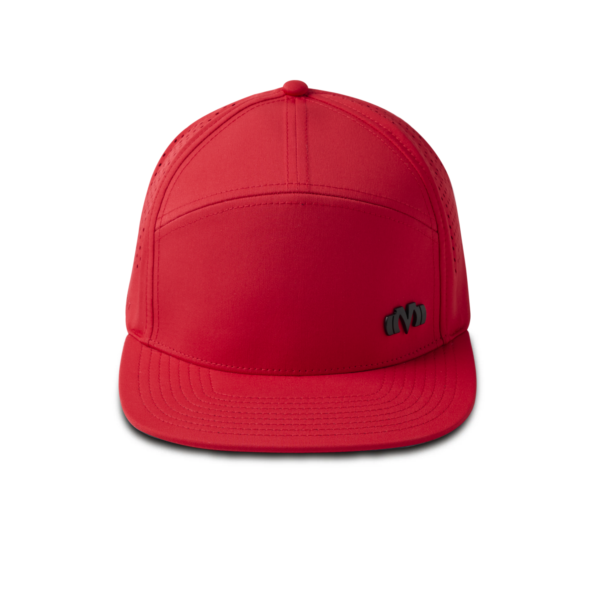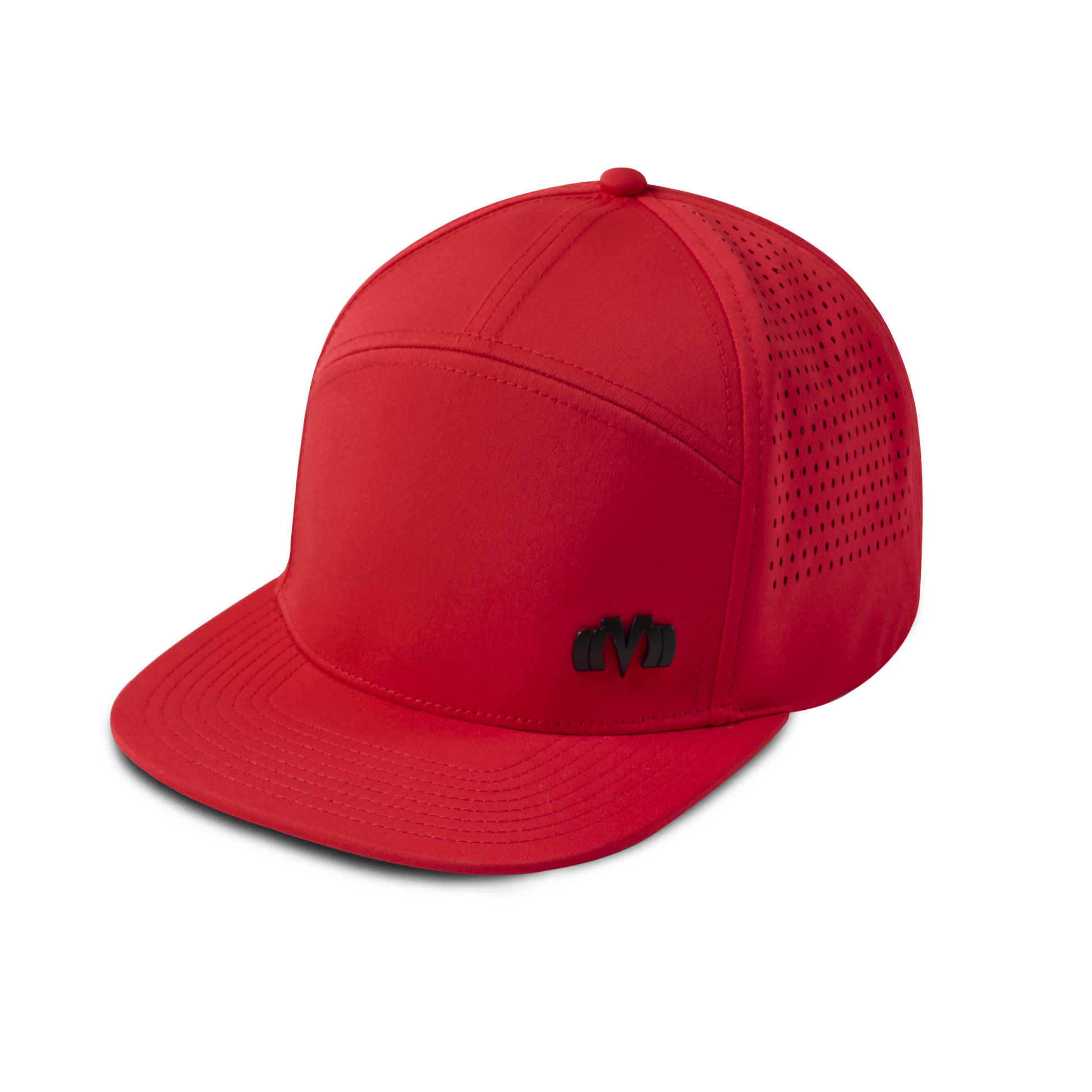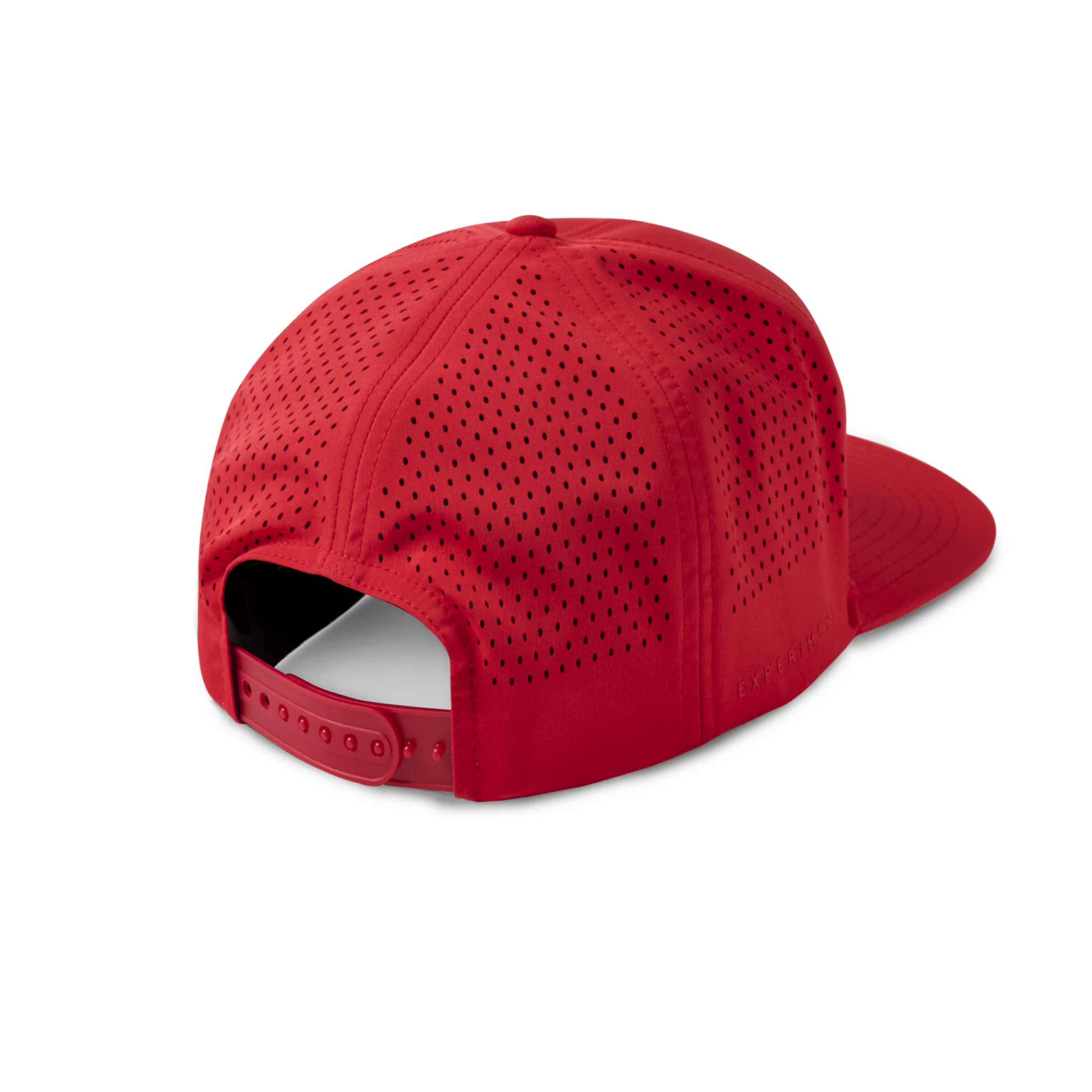 - 7-panel snapback hat with laser cut mesh back